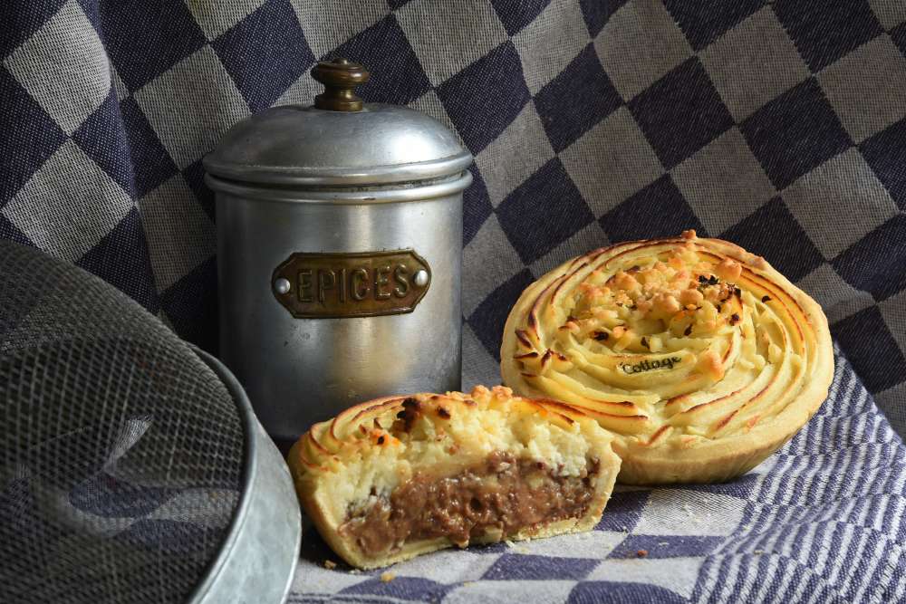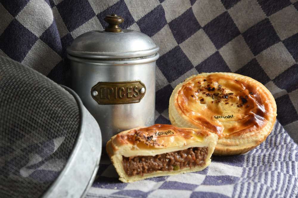 Met een rijke gehaktvulling en een dakje van aardappelpuree. Verkrijgbaar in een kleine, middelgrote en grote variant.