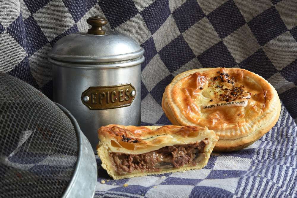 Met een vulling van gestoofd rundvlees en champignons. Verkrijgbaar in een kleine, middelgrote en grote variant.